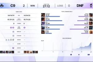 体育资讯12月9日讯 在刚刚结束的Kespa杯LCQ最后机会组的比赛中,C9以2-0横扫DNF。随后将进行LCQ组最后一场比赛由DNF对阵NS。